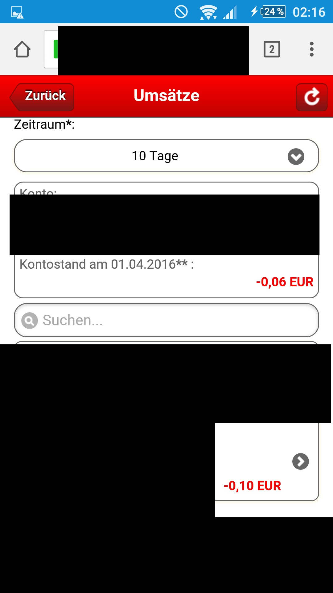 Als Dank hab ich nun -0,10€ als Entgeltabschluss bekommen, und mein Konto ist somit im Minus: