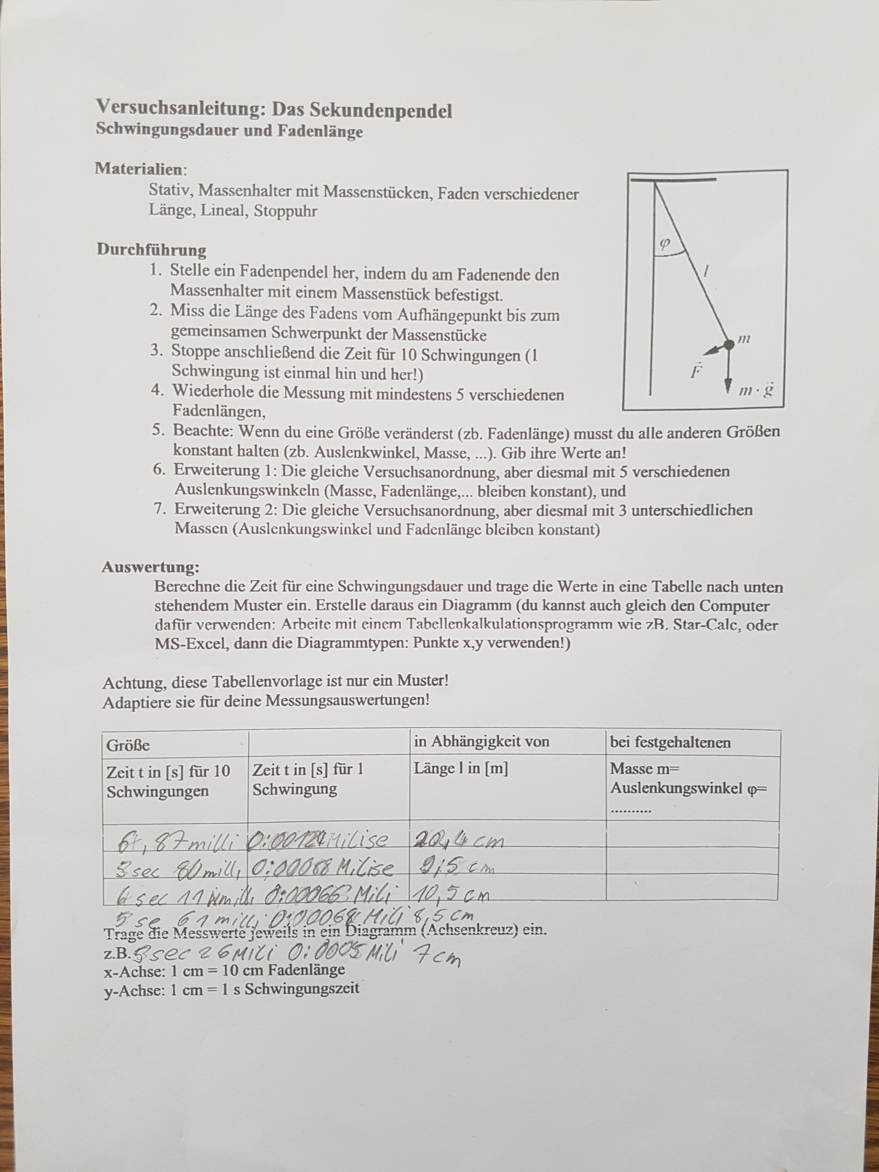Bei der restlichen Lösung, des Physik Experiment, komme ich leider nicht weiter. Kann mir bitte, jemand mit einem Lösungsvorschlag helfen?