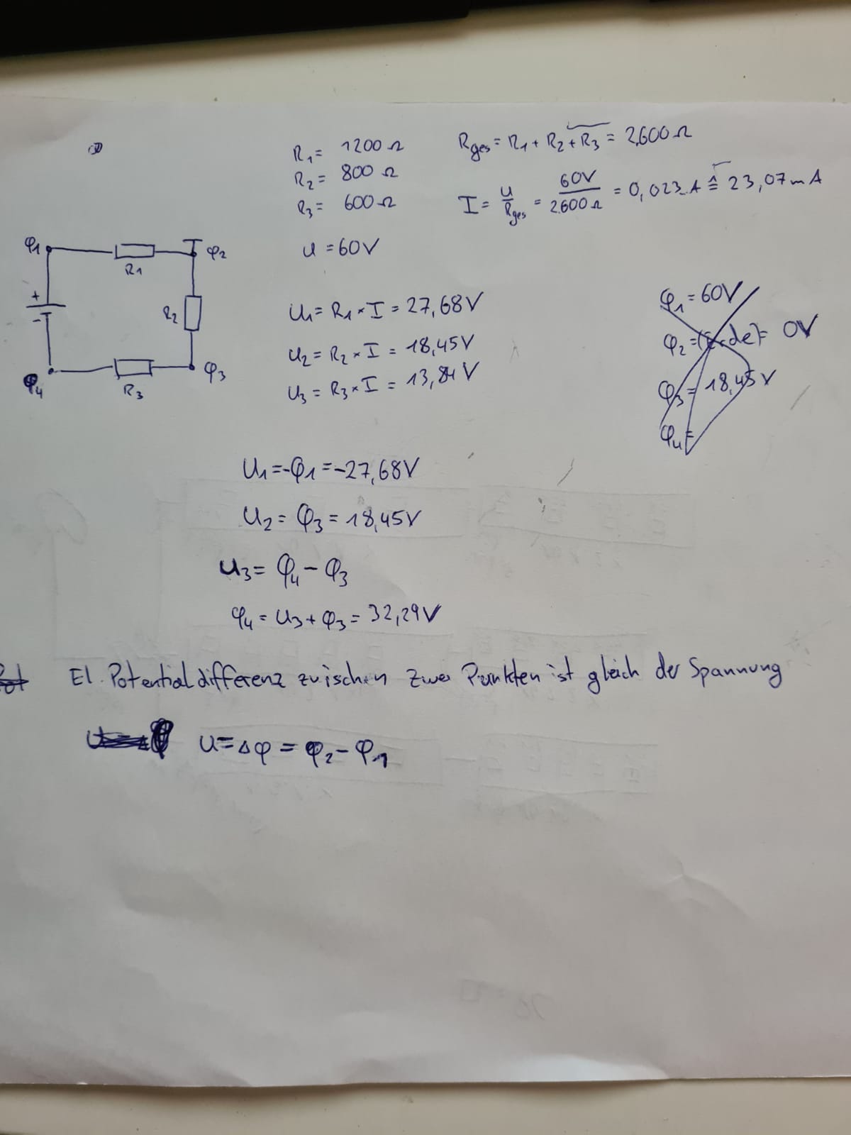Also U2 = ϕ3 = 18,45 V