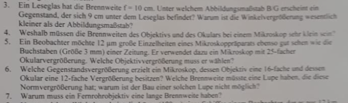 Hi, ich habe Probleme bei 5 Physik Aufgaben zum Themenbereich Optische Geräte. Aufgaben sind im Anhang.